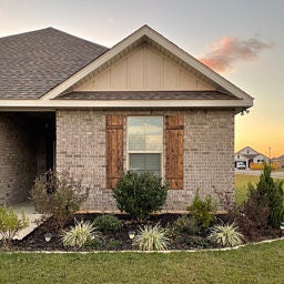Brown is a suitable shutter color to use on a red brick house. Example of a mid-sized classic brown one-story brick house exterior design in Little Rock with a hip roof and a shingle roof. Browse through the largest collection of home design ideas for every room in your home.